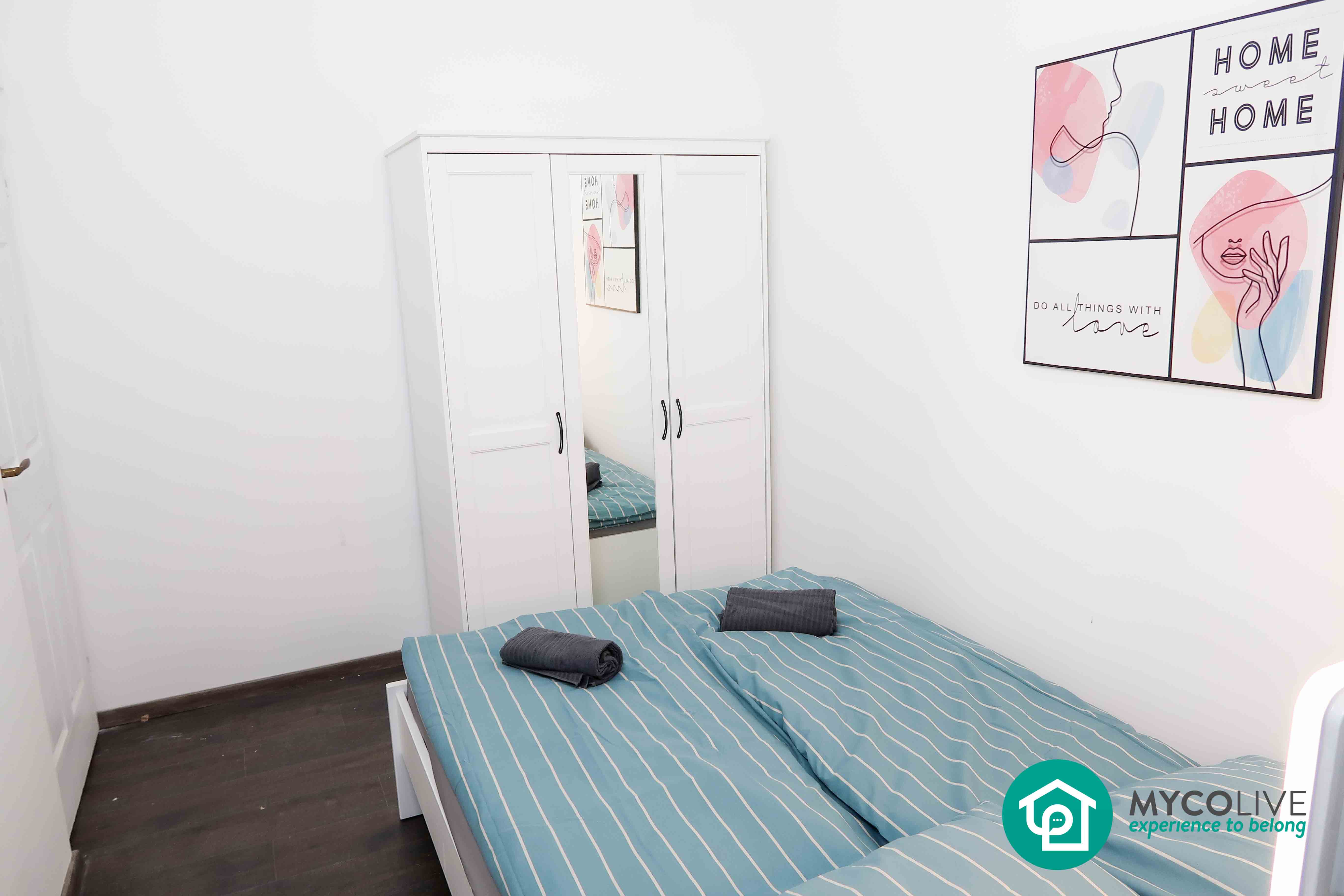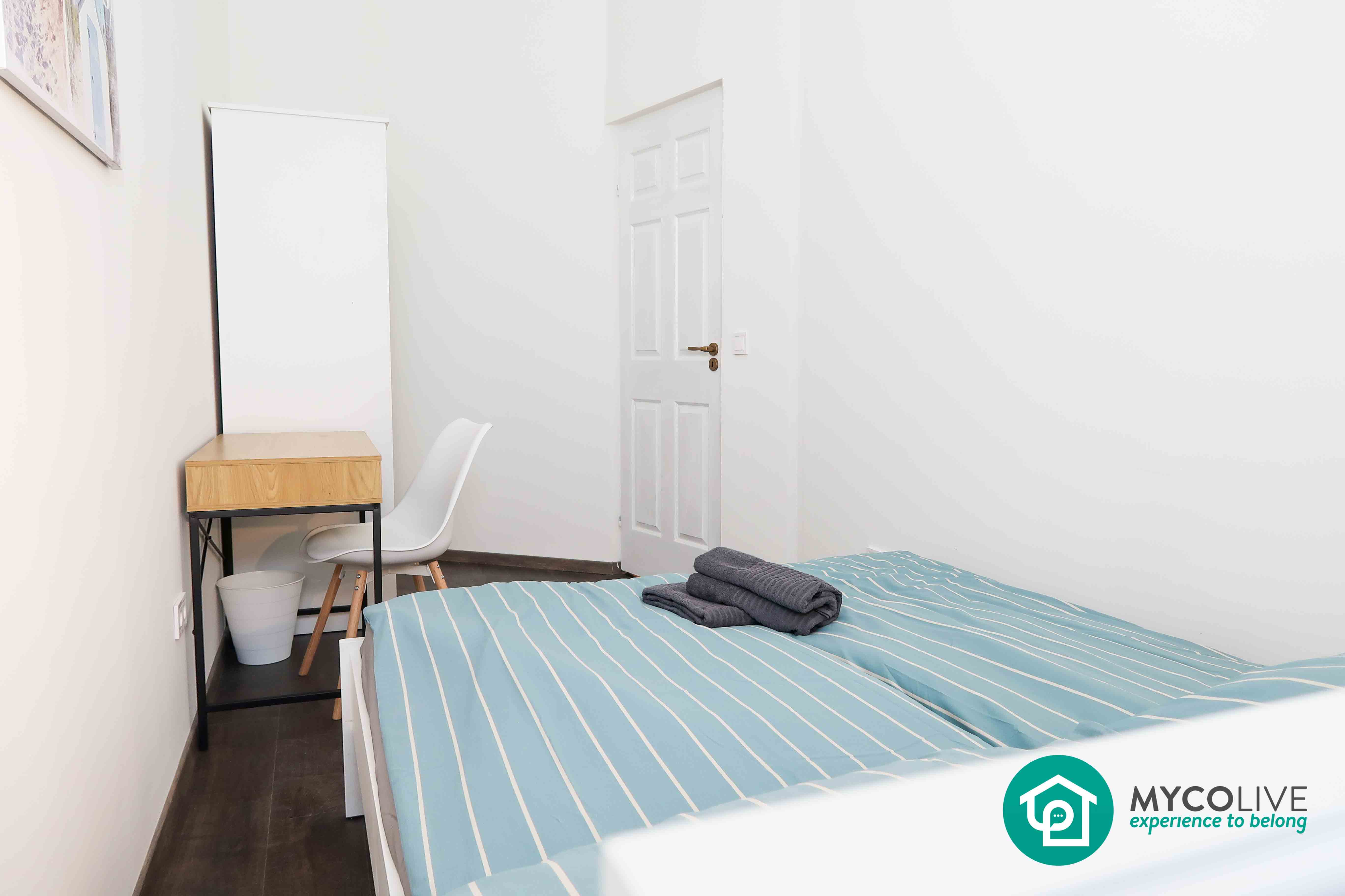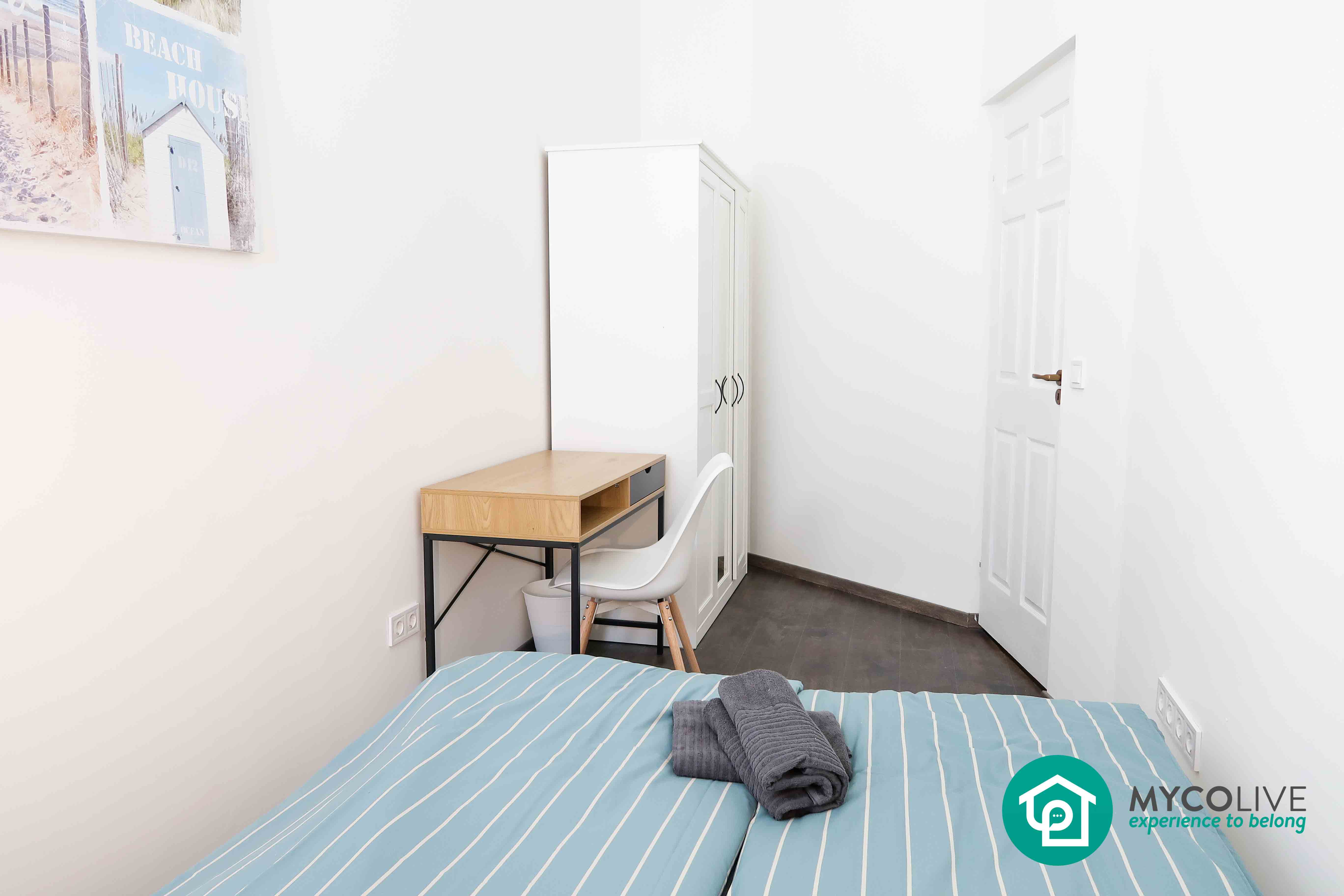 All 3 bedrooms are large and furnished, double bed, desk/table, wardrobes, a shelf, etc., the bedrooms have new windows providing natural light and can be locked.
